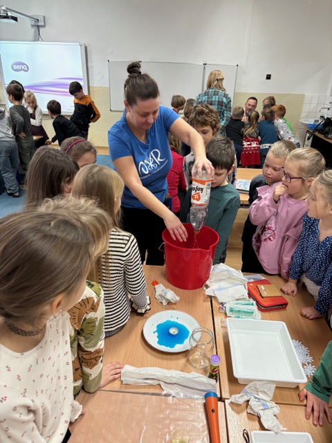 Pred vianočnými prázdninami sme pre druhákov Základnej školy pre mimoriadne nadané deti na Teplickej usporiadali výnimočné dielničky. Témou bola síce tradičná VODA, ale tentokrát v netradičnom prevedení – bolo o čosi viac rozprávania a o čosi menej experimentovania. Po krátkom úvode o fyzikálnych, chemických a biologických aspektoch vody, nasledovalo nesmierne  zaujímavé rozprávanie našej vzácnej hosťky- diaľkoplavkyne, plavkyne v ľadovej vode, propagátorke zdravého otužovania a motivátorke Sone Rebrovej. Deti s úžasom počúvali o jej preplavbe cez kanál La Manche aj o preplávaní ľadového kilometra, veľa sa pýtali a na záver jej nakreslili veľmi milé obrázky.  Zábava však pokračovla, Michal si pre deti pripravil pútavý kvíz o vode. Niektoré zaujímavé otázky a hlavne odpovede prekvapili aj nás dospelých. Na záver ešte zvýšil čas na zopár experimentov.  Aj takáto forma dielničiek mala veľký úspech, veríme, že sa nám podarí pokračovať aj v nasledujúcom roku.