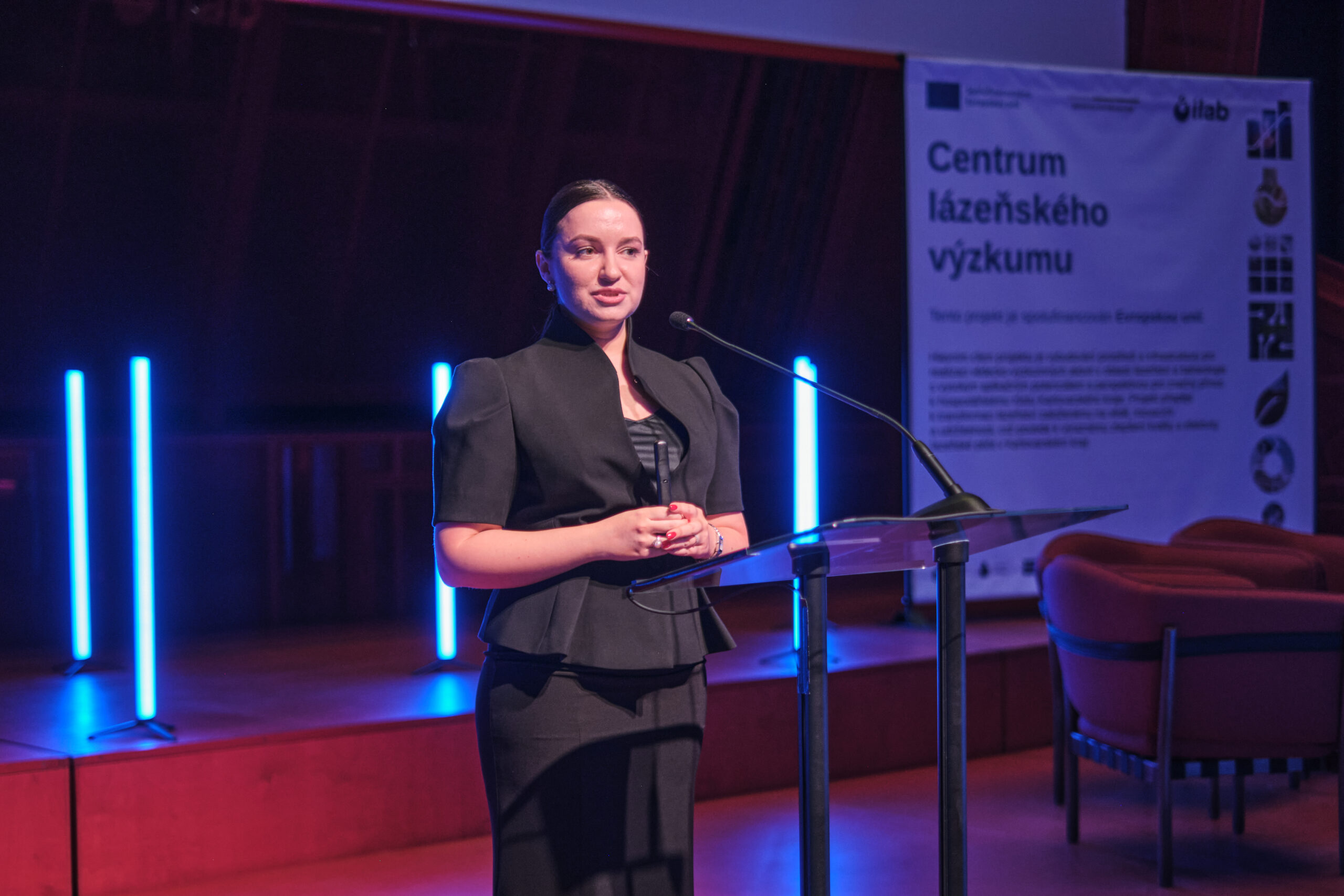 Zámer, ciele, plnenie a budúce aktivity projektu priblížila riaditeľka ILaB Alina Huseynli, pričom zdôraznila dôležitosť multidisciplinárnej spolupráce, prepojenie výskumu so systematickou prípravou mladej generácie odborníkov, transfer poznatkov z akademického prostredia do praxe, rozvoj spolupráce s Asociáciou hotelov a reštaurácií ČR na prepojení kúpeľníctva a cestovného ruchu, cezhraničnú spoluprácu s Bavorským zväzom kúpeľov a nadviazanie kontaktov s WHO v oblasti cestovného ruchu pre naplnenie vízie kúpeľníctva postaveného na poznatkoch založených na dôkazoch (audio 2:41 min, ukážka z prezentácie riaditeľky ILaB video)